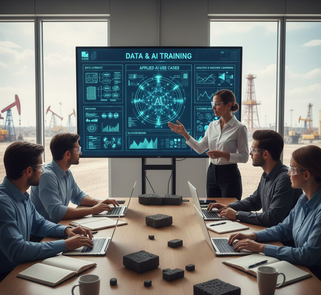 We provide practical data and AI training tailored for domain professionals working in energy and resource industries. Training is designed to bridge the gap between theory and real operational use cases, enabling teams to apply data and AI concepts with confidence.